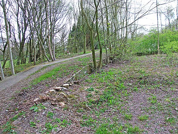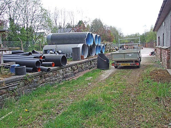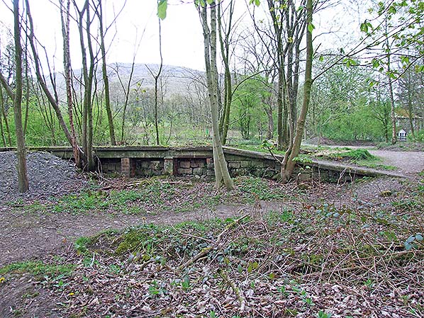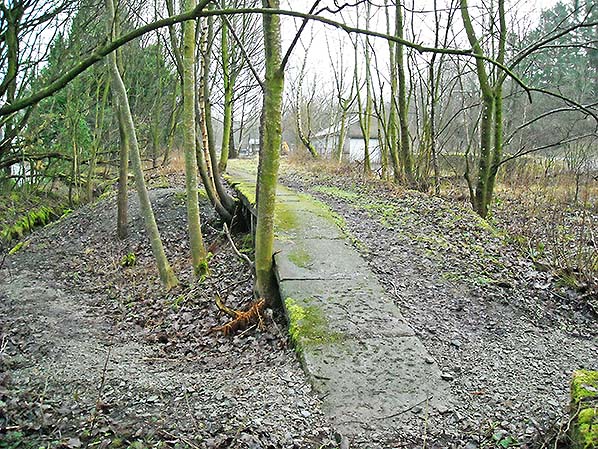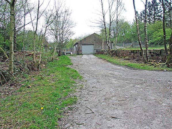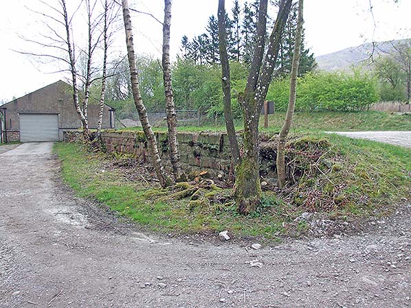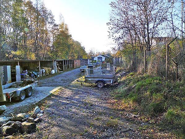 The site of Threlkeld station and goods yard looking east in October 2019. Note the footpath along the left side of the Threlkeld Depot site. This follows the track bed and some edge stones from the up side of the island platform are visible.