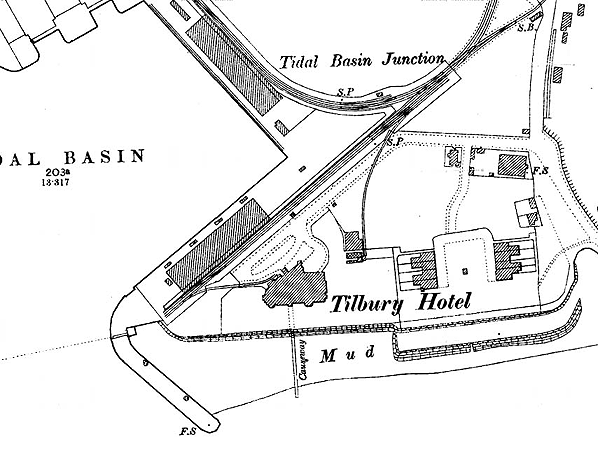 Unfortunately, problems with construction and conflicts with contractors saw the Dock Company almost bankrupted by the time the docks had been completed in 1886. Tilbury had both open and enclosed docks and built its own railway terminal alongside the docks’ tidal basin. This was sited at what became Berth 29. The terminal also provided a high quality hotel connected by a siding to the station; but initial business at both the docks and the hotel was poor, and the hotel closed within a year, standing empty for generations.