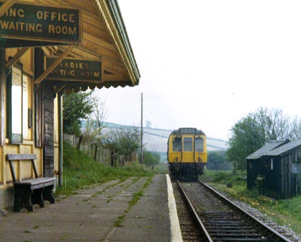 A single-car DMU leaves Toller bound for Maiden Newton c.1973.