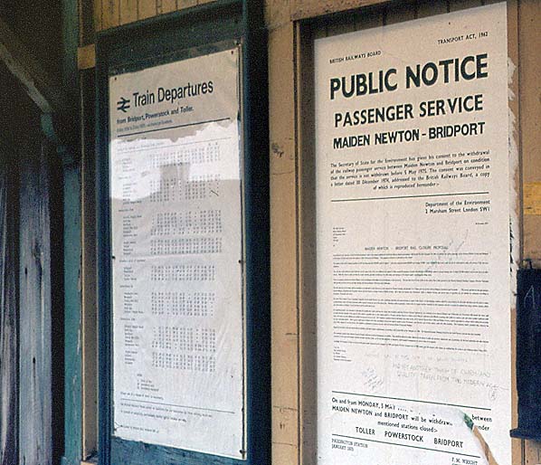The closure notice at Toller station in April 1975, 9 days before closure of the line.