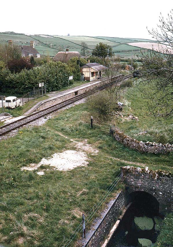 ![]() Station Name: TOLLER![]() In May 1975, two days before the station’s closure, Toller is viewed from the south-west. The charming rural setting amidst rolling hills can be appreciated. Apart from the car, little has changed since the station opened.