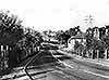 Photo from John Mann collection ![]() Looking north-east from the down platform in 1956. The up platform building comprised a brick waiting room with an open-fronted timber shelter at the north end. The covered stairway can still seen in this view even though the upper floor of the station building has been demolished. It came down behind the shelter to a door in the end wall of the waiting room. The proximity of the loading dock to the north end of the up platform is seen here.