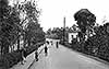 Photo from Phil Dawkins ![]() Looking north-east from Tongham station in October 1967 two years after the track was lifted. The station platforms were demolished in the late 1950s but the goods dock seen here remained for many years. The lower floor of the station building is also seen; at this time it supported a footbridge. On the far side of the road, the once rail-served military depot is still standing. It had been demolished by 1968 when a new GPO engineering centre was built on the site.