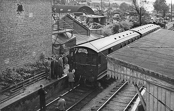 ![]() The Railway Enthusiasts’ Club 'Compass Rose' railtour is seen at Tongham station on 5 October 1957. This afternoon tour which started at Farnborough covered goods-only lines and little-used spurs in Hampshire, Surrey and Berkshire. It was the last official passenger train to stop at Tongham and Ash Green.