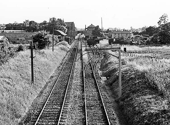 ![]() ![]() Looking north-east from the site of Tongham station in July 1975. Beyond the goods dock the trackbed has been raised to dock level.