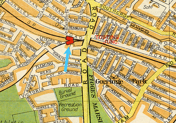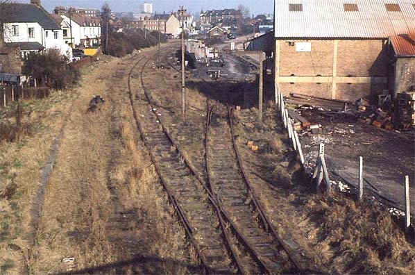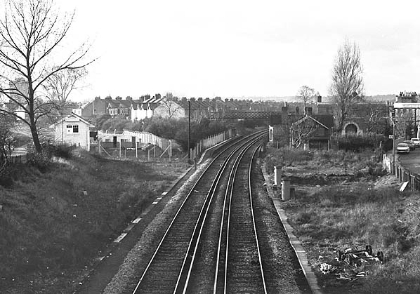 In 1894 the station was considered too small and was resited to the east side of Mitcham Road on 12th August that year. With the closure of the southern loop to passenger traffic in 1929 the junction was severed in 1934 and buffer stops installed 20 yards before the junction. The goods station remained open until 5th August 1968 operated as a long siding from Merton Park. After closure of the goods station the line was further cut back to a point just east of the Christchurch road bridge in Merton.