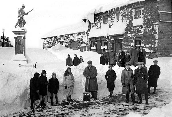The war memorial in Wolsingham Road. The memorial has a sculpture of a 1st world war Yorkshire Regiment infantryman on its top.