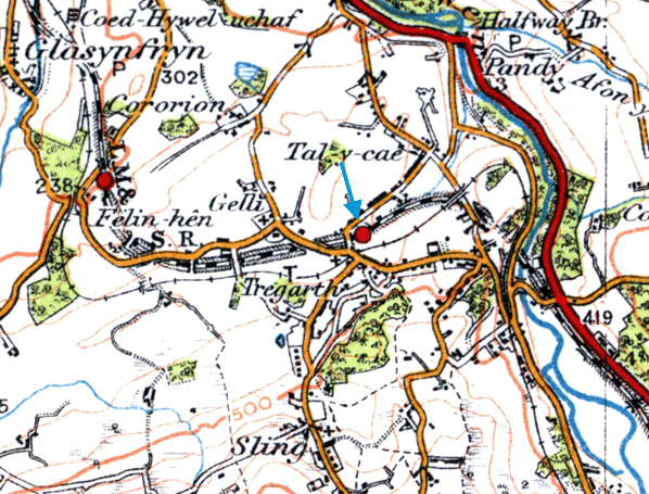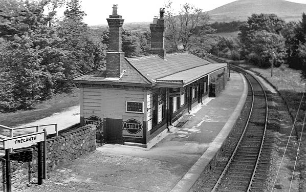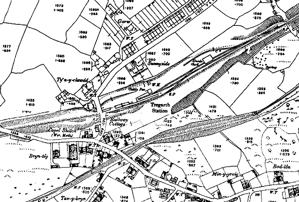 Notes: Tregarth station was situated on the London & North Western Railway (LNWR) Bethesda branch. The single-track branch was a 4-mile 26-chain line that linked the village of Bethesda to the Chester and Holyhead main line 52ch east of Bangor at Bethesda Junction. Between Bethesda Junction and Bethesda the line climbed by over 300ft which meant that there were steep gradients. The branch was authorised in 1880, engineered by Edward Walter Nealor Wood, C.E., and opened to passengers on 1 July 1884. Goods services were introduced on 1 September 1885. The branch closely followed the route of the Penrhyn Railway, a narrow gauge line that linked quarries in the Bethesda area to the coast. The Penrhyn Railway was owned by Lord Penrhyn and dated back to 1800. Originally horse-worked, steam operation was introduced in1877/8. The Bethesda branch crossed the Penryhn Railway three times (once under and twice over) and was built primarily to move slate from the quarries in the area.