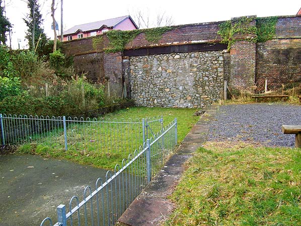 Looking from the west end of the station remains at Tregarth on 31 January 2013. The original covered staircase access to the platform would have been just to the right of the bridge abutment.