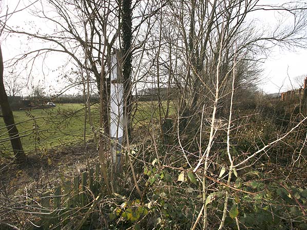 Tumby Woodside station - wooden support for station sign on the up platform in January 2010.
