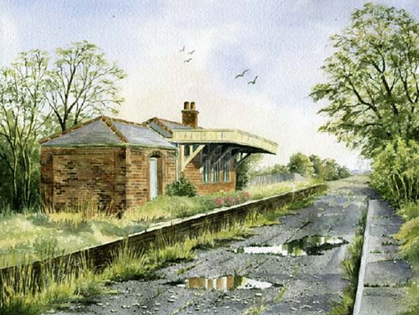 Watercolour of Tumby Woodhouse station in the 1970s