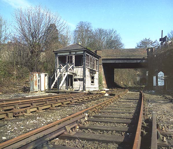 The signal box at the east end of Tunbridge Wells West Station in May 1987