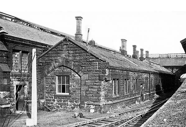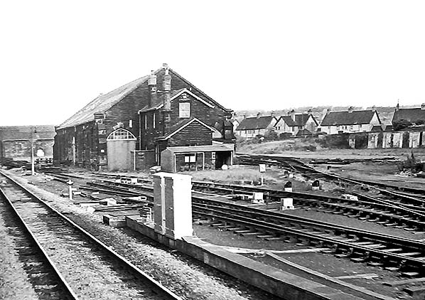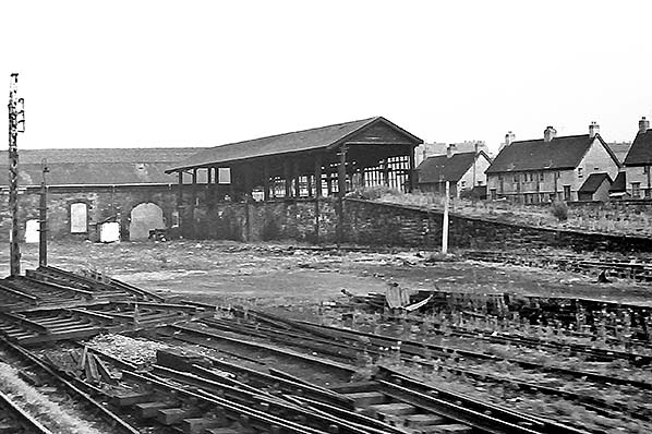 Photo by J C Dean ![]() Looking east in 1966, the original workshop range is seen here, attached to the 1850 engine shed. The NER roundhouse of 1878 is in the background. Photo by J C Dean