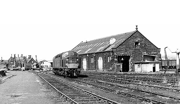 Photo from John M Fleming collection / NERA / Sine Project ![]() A general view of Tweedmouth, looking north-west in August 1966. The passenger station is in the background, and the Newcastle & Berwick Railway goods shed, adapted as a locomotive repair shop, is on the right. The Diesel-Electric ‘Type 4’ (later Class 40) locomotive handled freight trains at Tweedmouth in the shed’s final years.