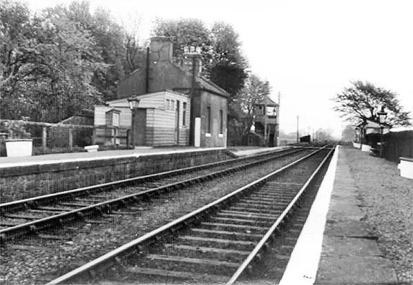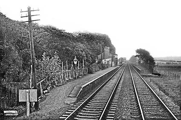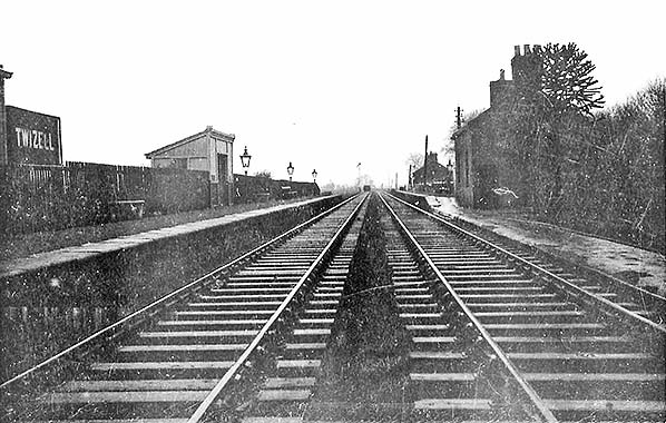 Twizell Station Gallery 1: 1930s - Winter 1963/64 ![]() Twizell looking south-west circa 1930s from close to the level crossing. The architecture of this station, a later addition to the NER Kelso Branch, was simpler than at its neighbours. The original stationmaster’s house, thought later to have become the booking office, is close to the up platform ramp (right) and the down platform has a modest timber pent-roofed shelter. The platforms are partially staggered, the up platform displaced some 50yd south-west of its opposite number, for reasons unknown. The running-in nameboard appears to have raised lettering, but is not a standard LNER design; the dark background suggests that it is in LNER livery. The NER casement oil lanterns here were of a slightly more elaborate style than found on many of the company’s stations. In the distance is a pair of railway cottages.