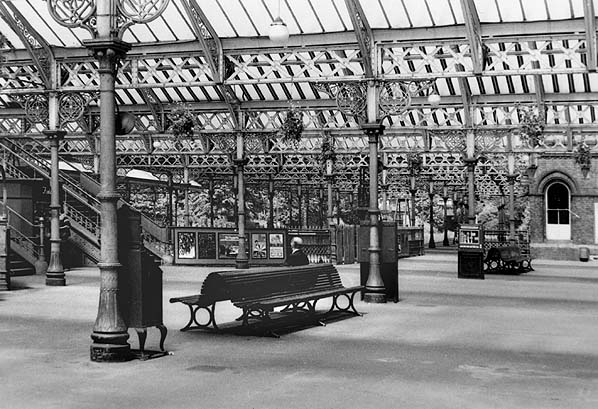 In contrast to most of the early twentieth century pictures of the concourse at Tynemouth, this view from June 1969 is somewhat less bedecked with ornamental plants, although the tradition is kept alive with numerous hanging baskets. To provide entertainment and diversion for waiting passengers a vending machine can be seen, whilst in the foreground, distinguished by its Queen Anne legs, is the back of a label printing machine. By operating a large dial, letters of the alphabet could be selected, and punched onto an aluminium strip – a forerunner of the popular ‘Dymo’ printing devices. On at least one occasion the author joined the queue of other youngsters keen to invest a few coppers in printing his name. The process was long and tedious and could cause jostling, impatient queues, especially when the operator at the head of the queue punched a wrong letter, and the whole laborious process had to be repeated.