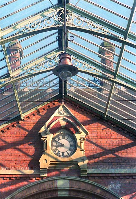 Under Metro administration Tynemouth station is unnecessarily large for the short trains that serve it and the reduced patronage in comparison with years prior to World War II. Its designation as a Grade II listed building in 1978 required them to retain and manage the building – unless a new ‘halt’ was provided on a nearby site to replace it. Details such as these shown here are quite delightful. The almost ecclesiastical mounting of the traditional clock is charming, and the ‘Sugg’ gas lamp contributes additional character.
