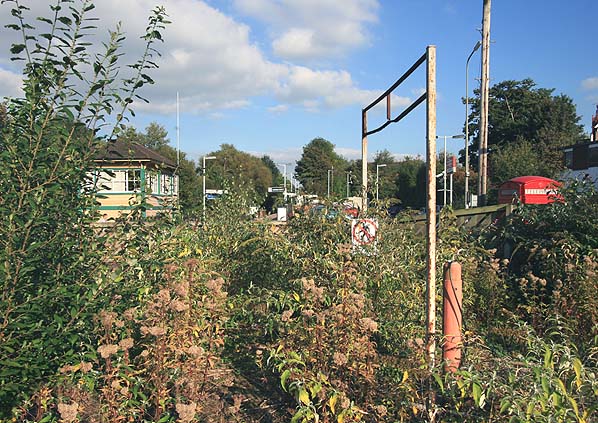 Looking east along the west bound platform at Uckfield Station in October 2007. the new Uckfield sttation on the east side of the level crossing can be seen in the background. Photo by Nick Catford