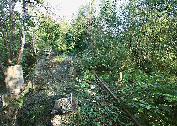 The west end of the east bound platform at Uckfield Station in October 2007. The west end of the platform was iof timber construction supported on the concrete pillars. Photo by Nick Catford