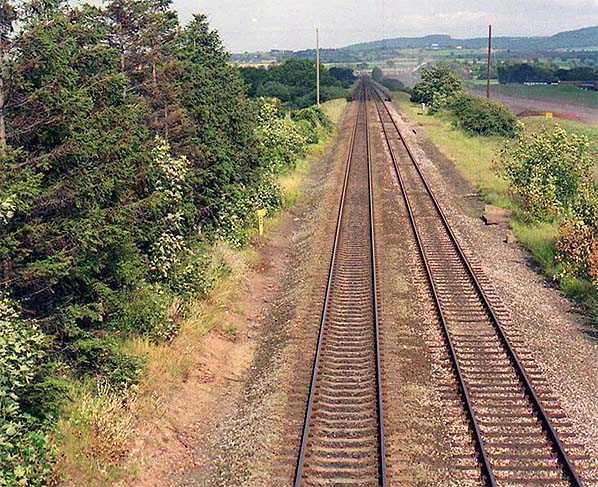 The entrance driveway that was the main point of access to Upton Magna station looking south on 8 March 2016. The station building was at the far end of the driveway.