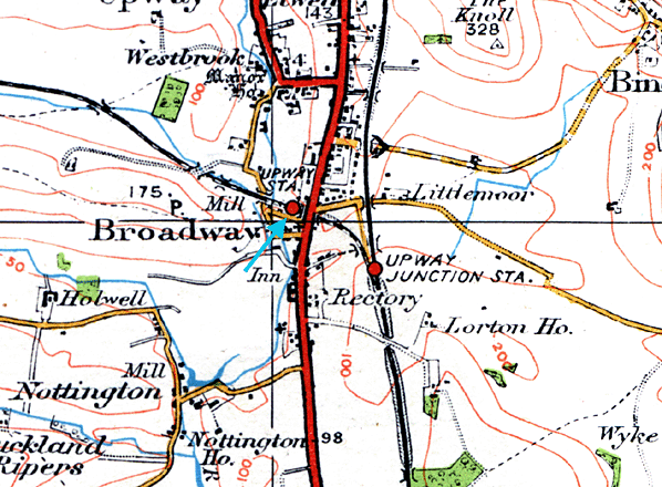 The station’s name was modified to Broadwey (Dorset) on 12 January 1906, probably to avoid confusion with Broadway in Worcestershire. A further change of name to Upwey took place on 1 January 1913, even though the station was in Broadway, Upwey village being ¾-mile to the north.