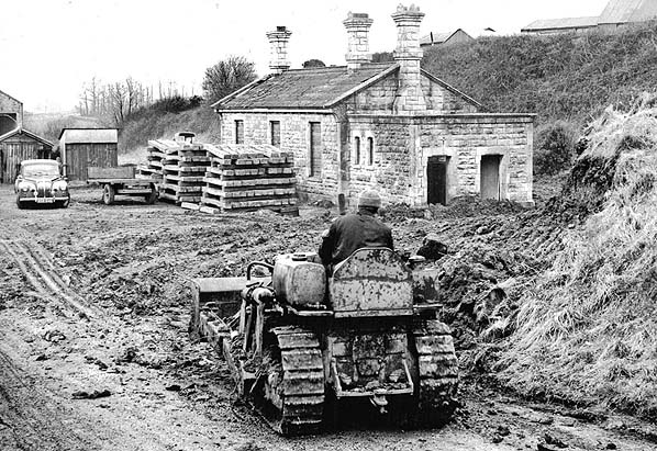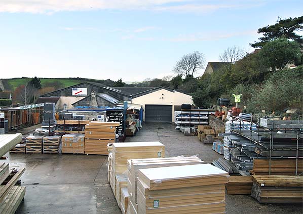 By the 1960s the trackbed had been filled up to platform level, and a warehouse had been built across the trackbed and goods yard, butting up to the west end of the station building which was retained as an office. The site was occupied by 'Bredy Supplies Ltd', a British Leyland tractor agent. In 1977 the site was bought by John House as a base for his already successful roofing contracting company 'I J House'. John House retired in 1994 but the business remained in the House family. The company is now trading as 'Buildrite', a trade builders and roofing merchant with a DIY and hire shop.Click to read the history of the company at Upwey. The station building is still in use as an office.