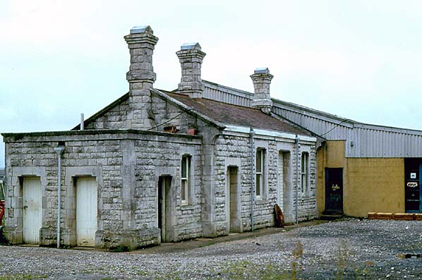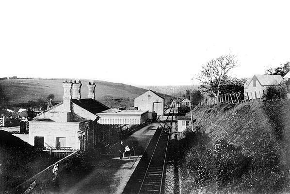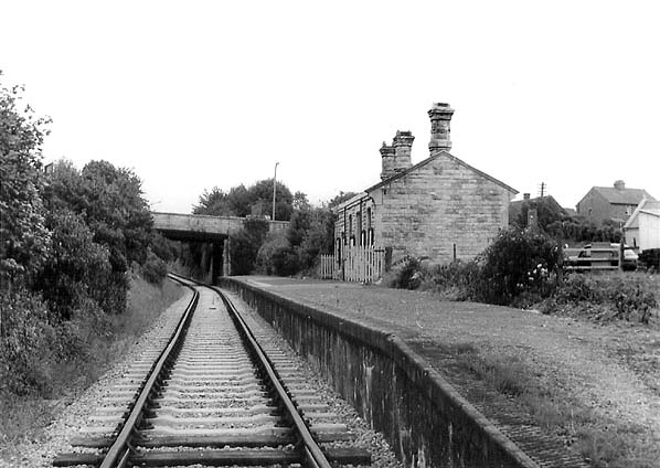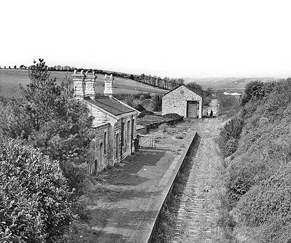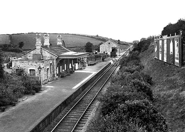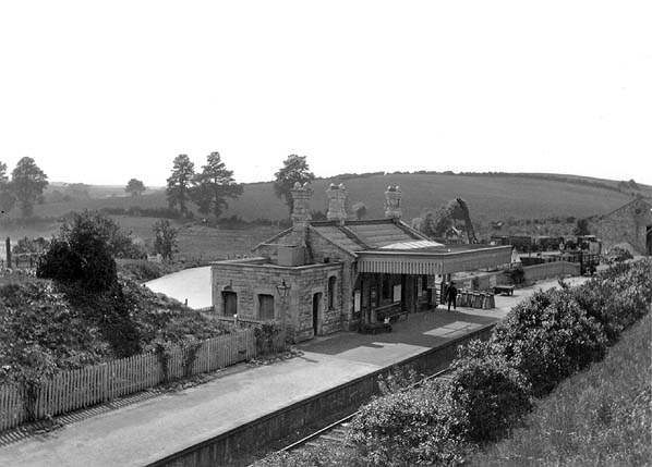 architect who designed a number of stations on GWR branches. The building incorporated a booking office and waiting room with a flat-roofed stone toilet block at the east end. The building had a wide canopy with a deeply fretted valance supported on six cast iron brackets. There were gas lamp standards on both sides of the building and two additional lamps were suspended from the canopy. There was one large nameboard at the west end of the platform. Regularly tended flower beds were found at the back of the platform.