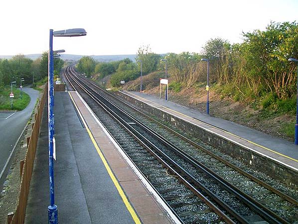 Upwey station looking north from the footbridge in May 2008. The road on the left is now on the site of the branch line and platform.