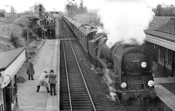 ![]() Enthusiasts wait on the down platform at Upwey and Broadwey station in the 1960s to catch a glimpse of O.V.Bulleid's West Country Pacific, 34056 named 'Croydon'. Emerging from Southern Railway's Brighton works in February 1947, this loco first carried the number 21C156 and had Bulleid's air smoothed casing. It was rebuilt at Eastleigh with Walschaerts valve gear in January 1960 and lasted in service until May of 1967, when it was withdrawn from 70E, Salisbury shed and broken up by Cashmores of Newport in September that year.