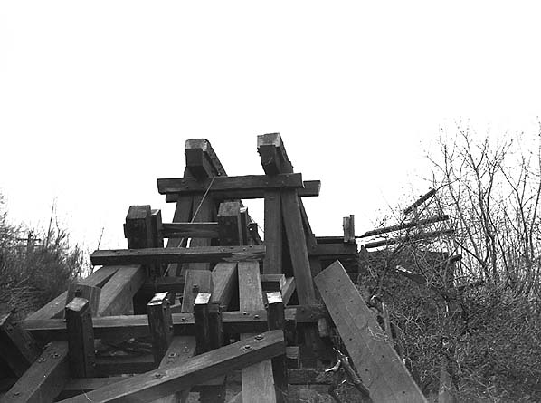Demolition of the wooden viaduct over the River Deerness just west of Ushaw Moor Station in February 1968