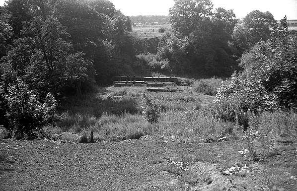 Site of the wooden viaduct over the River Deerness just west of Ushaw Moor Station in August 1968