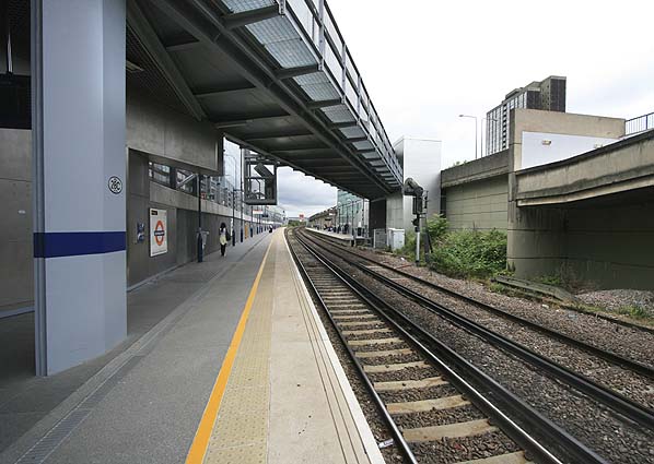 Shepherds Bush Station looking north in July 2009. The new station occupies the mid and north end of the old Uxbridge Road station and the site of the 1844 Shepherds Bush station.