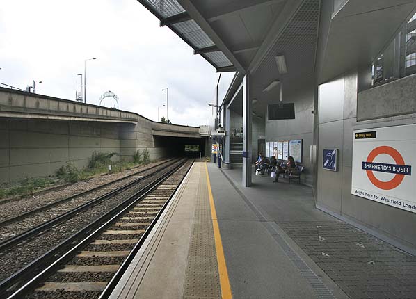 Shepherds Bush Station looking south in July 2009. Uxbridge Road platforms would have continued part way under the bridge.