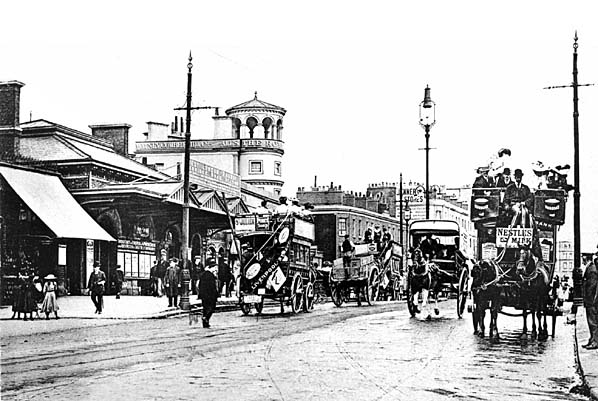 Uxbridge Road in the early 20th century showing the station entrance as originally built