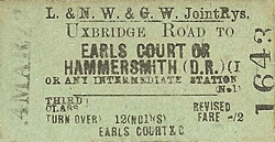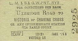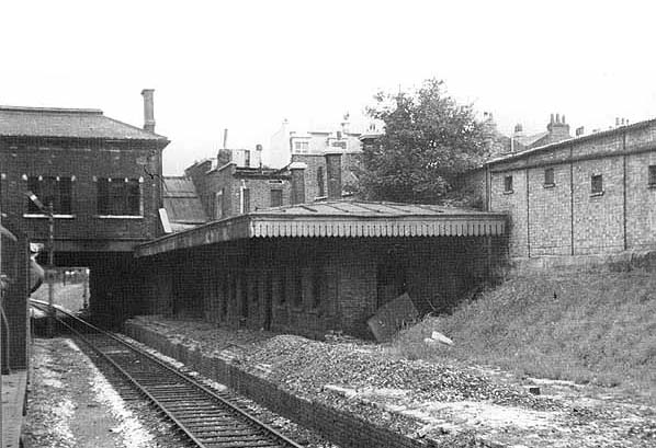 Northbound platform at Uxbridge Road looking south from a passing train in August 1956