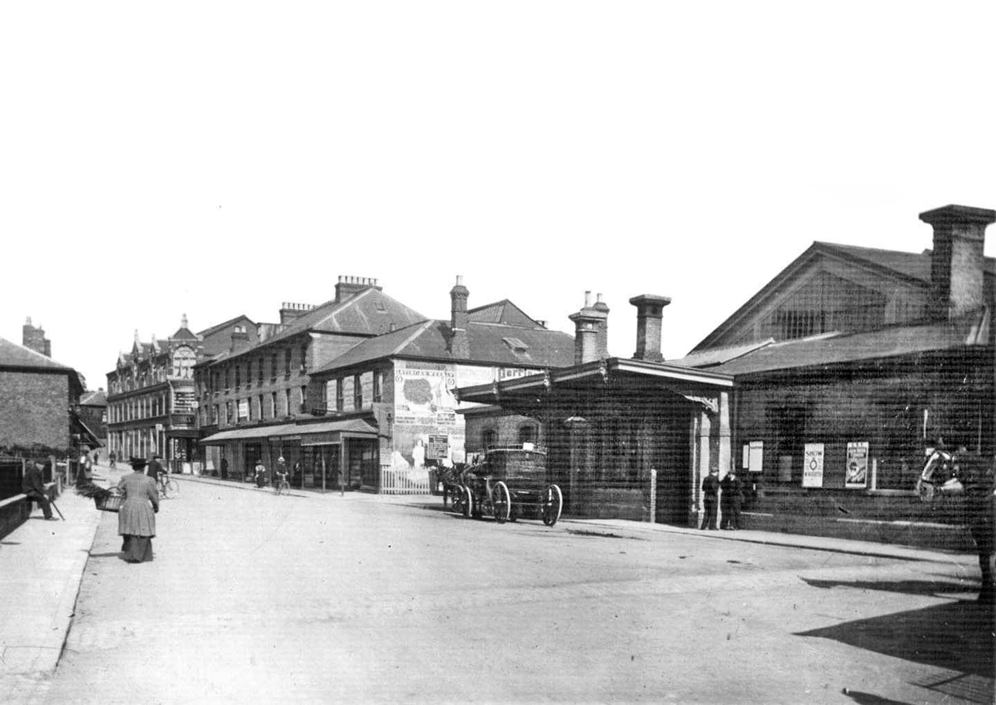 Looking along Vine Street towards High Street sometime around the turn of the 20th century. Vine Street station stands on the right and the clutter of small buildings at the entrance to the goods yard is out of view at far right. The ornate building in the left background is the original Randalls department store which dated from 1891. This building was replaced by the present structure in 1937 which sadly closed its doors for the last time in 2015. Randalls became infamous during the Second World War for displaying advertisements which many people viewed as being pro-Nazi. But all that was still to come when the lady on the left was caught by the camera carrying her wicker basket. Difficult to contemplate in modern times, her dress, virtually dragging on the road surface, was not so much a fashion style but the result of the morals of the time which dictated that no part of a woman's body below the neck should be visible in public - it being indecent to do otherwise. Almost any railway station, as opposed to halt, had an inn nearby and Uxbridge Vine Street was no exception. Unfortunately the inn in this case is out of view to the left. Its history tends to be confusing according to source but, broadly, it began life as The Swan and with the coming of the railway was renamed the Railway Hotel. Sometime around 1930 it became The Railway Arms and has also been referred to as The Railway Inn, probably due to it being marked as an 'inn' on certain maps. The establishment survived the demise of the railway to Vine Street and in 1976 became the oddly named 'The Printer's Devil'. Perhaps needless to say, the building no longer exists having been swept away by the redevelopment of the area in the 1990s. Also out of view on the left and behind the railings stood the building which became, in 1910, the Electric Cinema and many years later became Uxbridge fire station. It too no longer exists. At the time of this photograph road motor transport was very much in its infancy and the preserve of a very select and daring few. As is obvious, getting around, other than by train, was on foot, by bicycle or by horse drawn vehicles. Trams and buses still being mainly horse drawn at this time. Quite typical of the time was the Brougham seen parked outside the station. At the time of the photograph, Uxbridge was of course well served by railways. Otherwise and in due course, the London General Omnibus Company operated four bus routes but the garage for Uxbridge was, then, actually at Denham. At least one of the bus routes operated by 'The General', that to Slough, passed Vine Street station. London United Tramways opened its electric tram route Uxbridge in 1901 as an extension to its pre-existing Southall route. Route 7 as it was numbered operated to Shepherd's Bush and survived into London Transport days, by which time 'Feltham' class trams were a common sight on the route. In 1936 the trams were replaced by the 607 trolleybus which more or less followed the same route. Both the trams and trolleybuses only served Uxbridge along the High Street and terminated not far from the former High Street railway station. The 607 trolleybus eventually became the 207 motor bus route. Thus although Vine Street station was only a short walk from the High Street it was nonetheless away from the main core of public road transport serving Uxbridge. Interestingly Transport for London has reintroduced a 607 route albeit, of course, with motor buses but whether the choice of route number is deliberate or coincidental is a point of some debate. Vine Street itself has, as of 2018, the 427 route running between York Road (Uxbridge Station) and Acton (Old Town Hall).