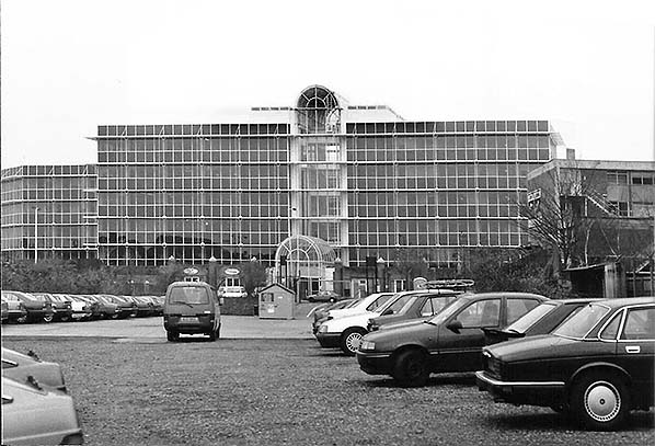After the site was cleared in was used as an NCP car park and it also had a weekly market as seen in this view in January 1992. The Charter Place office block, now the UK headquarters of Coca Cola, is on the far side of Vine Street, The side platform remained in place although hidden by cars in this view until there was major development which included the building of Hertz House on the station site. This was under construction in February 2001.