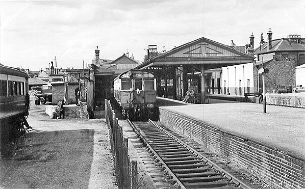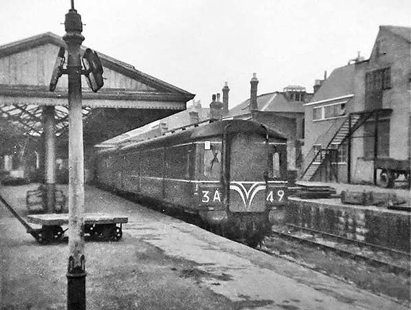 Photo by BV Holland ![]() Sometime in the later 1950s an ex-GWR diesel railcar in carmine and cream livery arrives at Uxbridge Vine Street. As always, a decent selection of goods vehicles are present while at far right can be seen the end of the wall which once supported the trainshed roof. The trainshed had dated back to broad gauge days and such structures were common features on Brunel's broad gauge network. The railcar is probably No.W27W, one of the batch assembled at Swindon during the Second World War. The railcars were highly successful, when, that is, they were not catching fire, and are sometimes considered the basis from which the BR DMUs of the 1950s were developed. However, 'developed' is arguably as good as it gets as the GWR railcars were structurally and mechanically significantly different to the BR DMUs. There were 38 GWR railcars in total, which included a pair if twin sets (which mostly ran with an ordinary carriage, converted, in between) and two parcels cars. Nos.1 - 17 were the earlier streamlined cars which gave rise to the 'Flying Banana' nickname. No.18 was an experimental one-off, being a streamlined car but fitted with proper buffing a drawgear to allow the hauling of trailers. No.18 was to form the basis of the more angular and arguably better looking Swindon cars such as that depicted here. The angular design was probably the result of wartime constraints although streamlining was a 1930s fad which was quickly outmoded, not least due to more important considerations during wartime and subsequently.