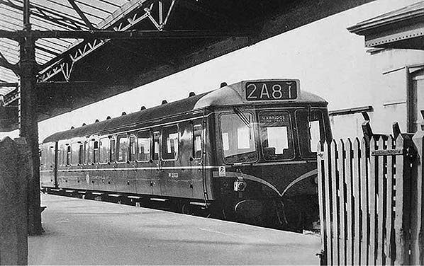 Photo by Charlie Randell ![]() Photo by Michael Perry ![]() Photo by Chris Totty ![]() With tail lamp in place and correct headcode displayed, Pressed Steel Co. single-unit diesel railcar No.W55023 waits, apparently in vain, for passengers prior to departing on its short journey to West Drayton. This scene was typical of Vine street during the off peak periods, even way back in Great Western days. The year is 1962, the same year as would witness the end of branch passenger services. Railcar W55023 ended her revenue earning days on Bletchley - Bedford services, on which she survived into the 21st century, and had been repainted into a representation of original livery but with small yellow warning panels and high intensity headlights. She had also by then received circular buffers and carried unit number L123. No.W55023 had also spent time in South Wales and happened to be operating services to Cymmer Afan on the day that line closed in 1970. Otherwise much of her working life was in the London area, mainly based at Reading. She is now in preservation and, at the time of writing, was at the Chinnor & Princes Risborough Railway.