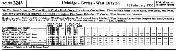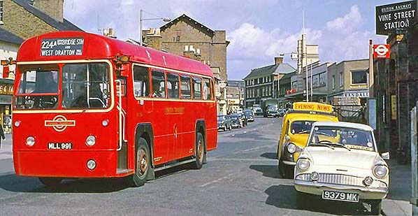 ![]() RF351 passes Vine Street station on route 234A in 1961. RF 354 was new to Merton garage in 1952. The vehicle was sold in 1978 and used by a Round Table group and was eventually purchased by the Northchapel Bus Consortium (its current owners) in 1999, and this group carried out the complete restoration of the vehicle. Route 234A was operated by Uxbridge garage and ran from Uxbridge to West Drayton via Cowley.