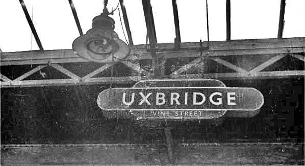 Uxbridge Vine Street Station totem in 1965. Totems were of no value in those days and were left in place until demolition of the platform a few months later. Photo by Mike Matthews