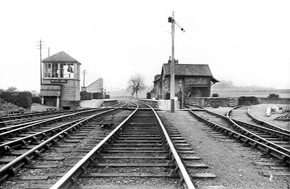 ![]() Station Name: VELVET HALL![]() Velvet Hall station looking north-east, c1960. All of the major structures are present, including the up platform waiting shelter, and oil lantern casements are in place on the platforms.