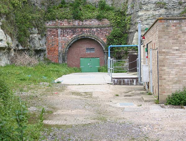The south portal of Ventnor Tunnel in June 2005 - the portal is with a Southern Water compound Photo by Nick Catford