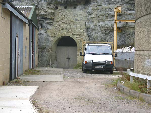 One of numerous underground chambers cut into the quarry face. These were originally used by the coal merchants for offices and storage. Some of them are now used by the companies in the industrial estate. (June 2005) Photo by Nick Catford