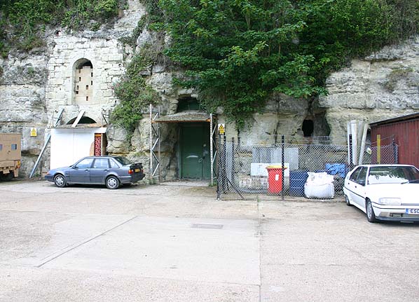 One of numerous underground chambers cut into the quarry face. These were originally used by the coal merchants for offices and storage. Some of them are now used by the companies in the industrial estate. (June 2005)