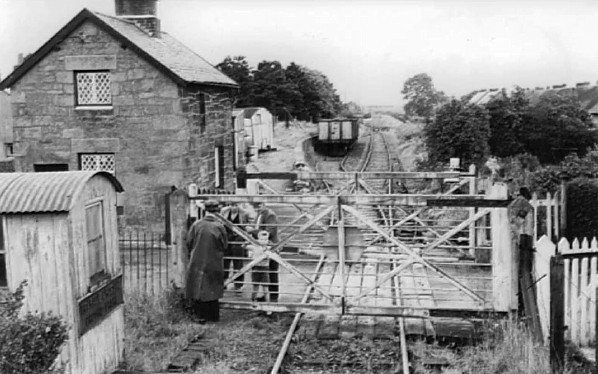 On the west side of the level crossing on the north side of the line there was a small single storey wooden signal box that controlled the crossing.