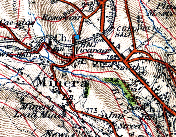 Notes: Vicarage Crossing Halt was situated on the Wrexham & Minera Railway which in its original form ran from a junction with the Chester and Shrewsbury line north of Wrexham called Wheatsheaf to a limeworks at Minera. The line opened in July 1847 and passed through the Moss Valley and Brymbo areas that had mines and ironworks. The line had two very steep rope worked inclines and two tunnels between Wheatsheaf Junction and Brymbo which were a hinderance once traffic levels built up. To solve the problem the Wrexham & Minera Railway (W&MR) company was incorporated on 17 May 1861 to build a three mile line from the Chester and Shrewsbury Railway at Croes Newydd to the original Minera line at Brymbo. The line opened as a single track branch on 22 May 1862 for goods services only and it was able to be worked by locomotives throughout. The original line closed between Brymbo and Moss but the rope worked incline on the east side of the Moss valley remained in use until 1908.