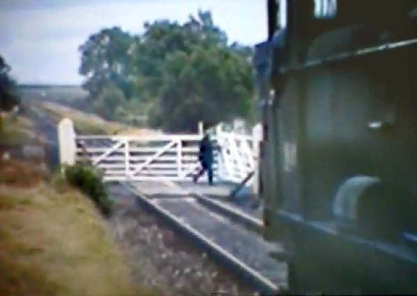 Looking east at Vicarage Crossing in the 1960s, as one of the train crew opens the gates to allow a Wrexham-bound goods train to pass. The halt was located on the right side of the line beyond the level crossing.