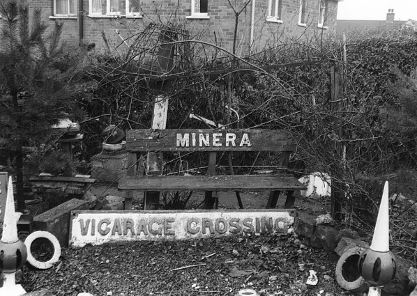 Railway artefacts at the site of Vicarage Crossing Halt in February 1980.