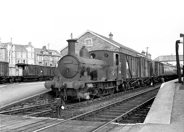 Mixed train at Wadebridge.Station looking north in the 1960's